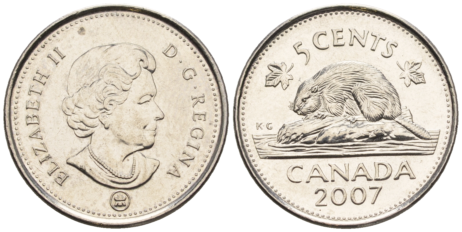 Канада 5 центов 2007 Елизавета II (1952-2022), бобер KM 491 сталь плакированная никелем 4609-449