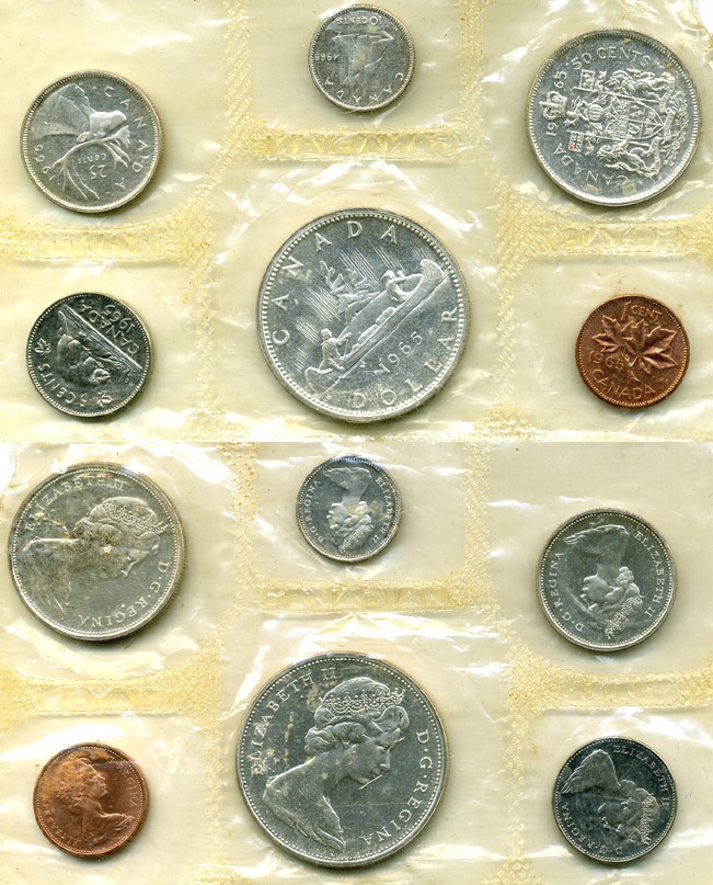 КАНАДА НАБОР ИЗ 6 МОНЕТ 1965 серебро UNC 7-3-15