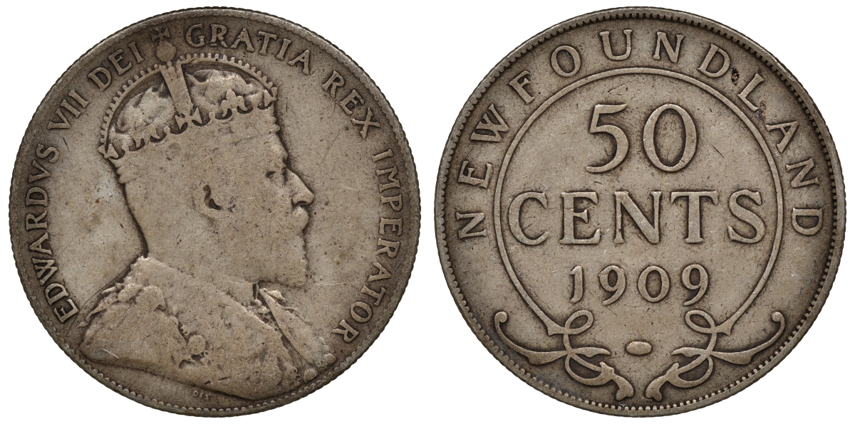 Ньюфаундленд 50 центов 1909 Эдуард VII (1901-1910) KM 11 серебро 4044-1312