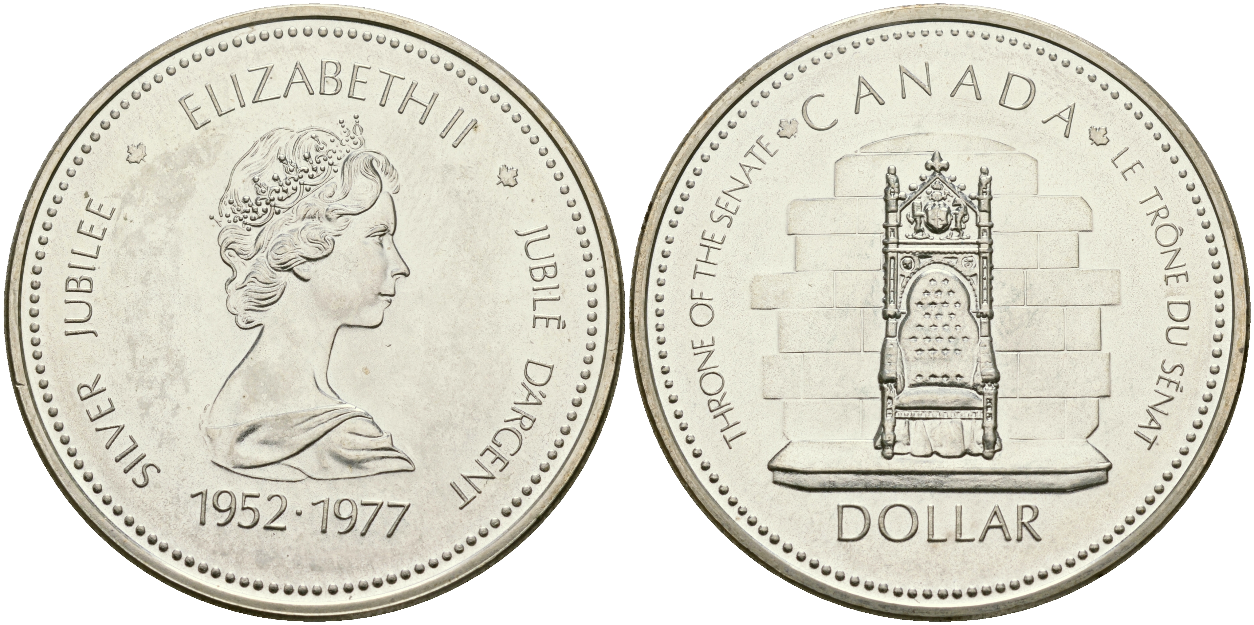 Канада 1 доллар 1977 25 лет правления Елизаветы II, сенат, трон KM 118 серебро UNC 1098-4-11
