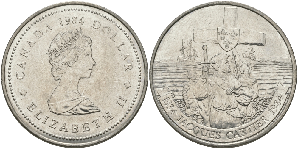 КАНАДА 1 ДОЛЛАР 1984 ЖАК КАРТЬЕ KM 141 никель UNC 97-223
