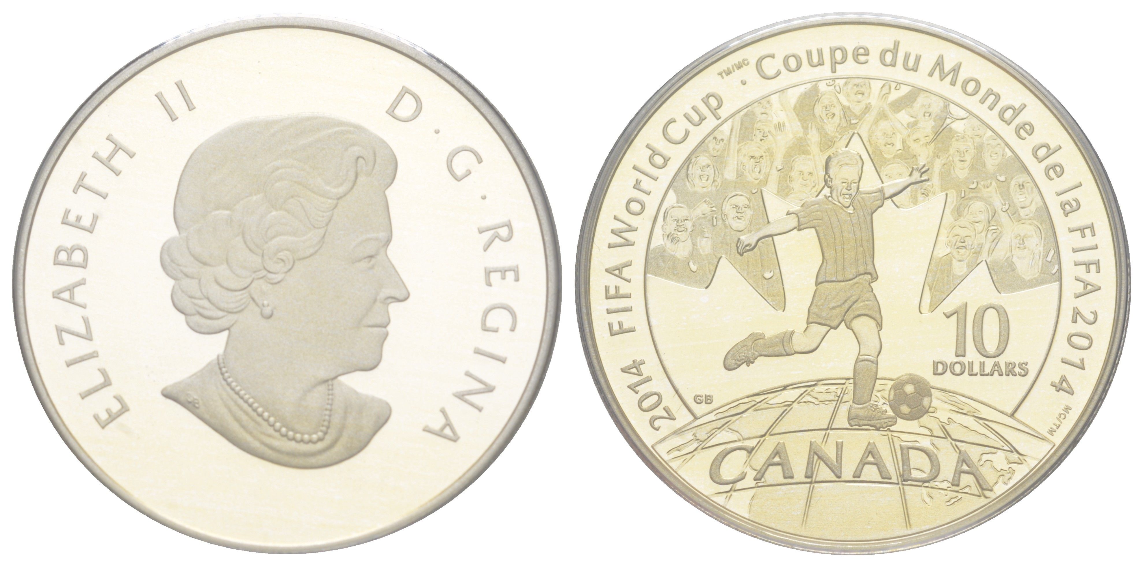 Канада 10 долларов 2014 Чемпионат мира по футболу ФИФА 2014, в оригинальной упаковке, с сертификатом KM 1533 серебро PROOF 8-2-01-61