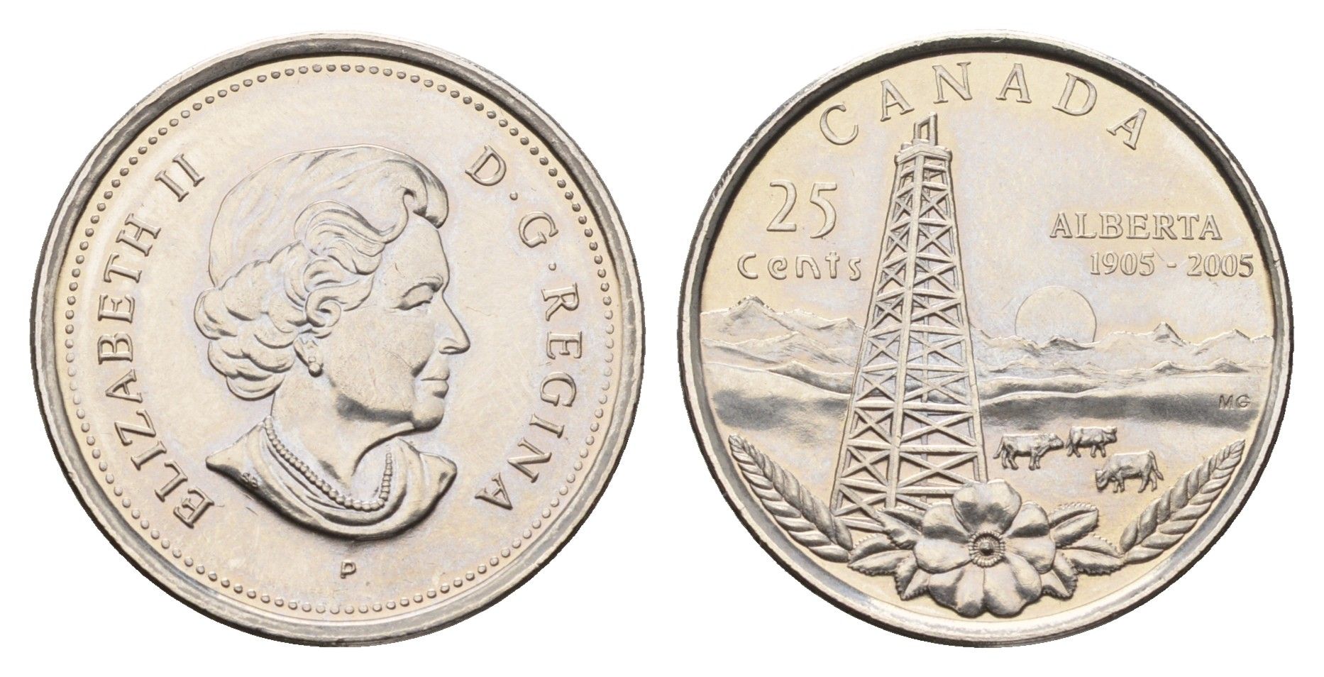 Канада 25 центов 2005 100 лет провинции Альберта KM 530 сталь плакированная никелем UNC 113-1226