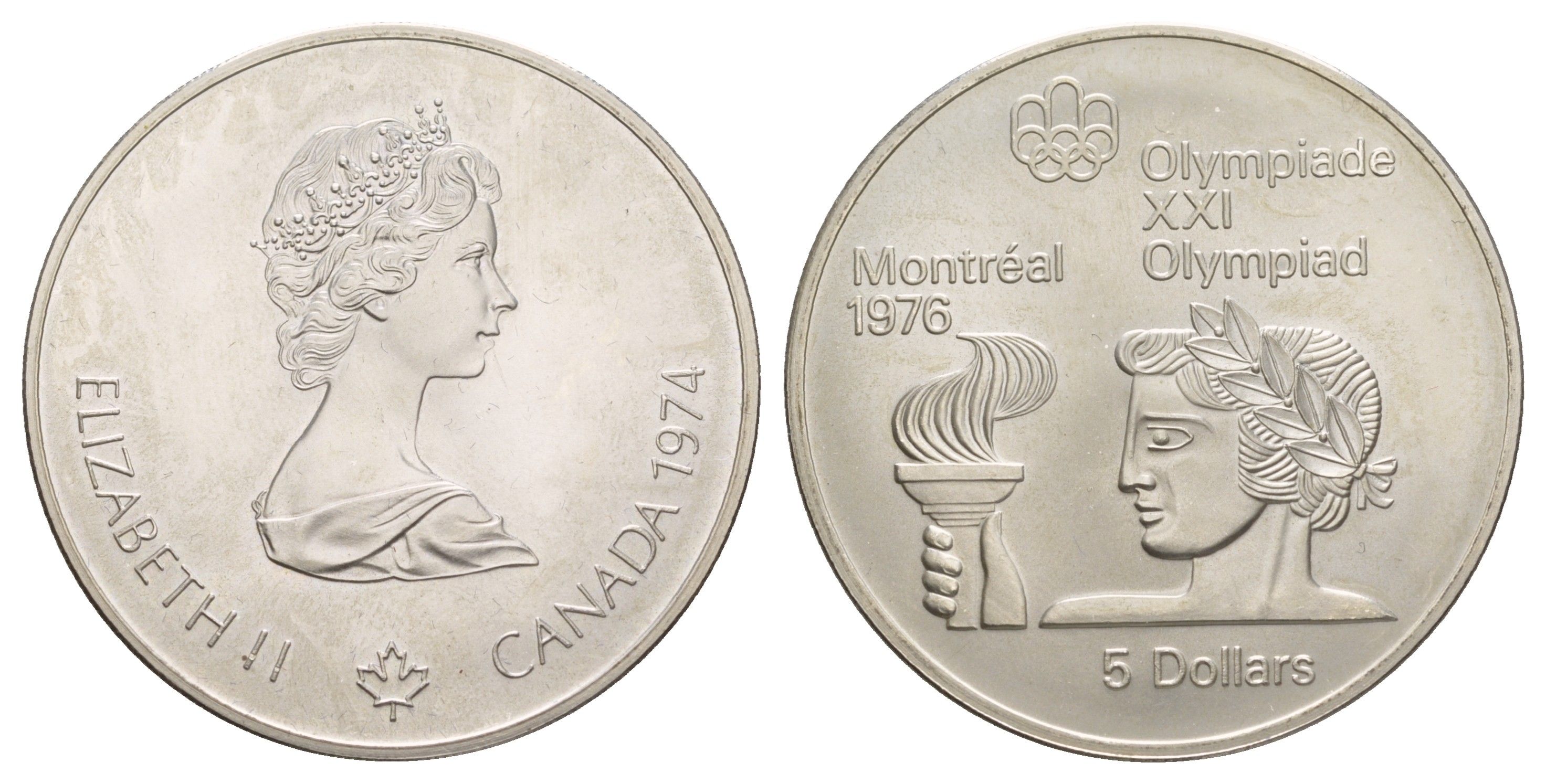 Канада 5 долларов 1974 XXI летние Олимпийские Игры, Монреаль 1976 - Атлет с факелом KM 90 серебро BU 413-4512