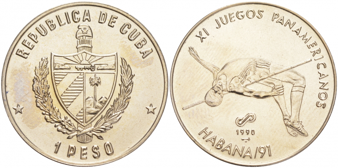 Куба 1 песо 1990 11-е панамериканские игры в Гаване в 1991 году, прыжки в высоту KM 310 медно-никель UNC 1526-211