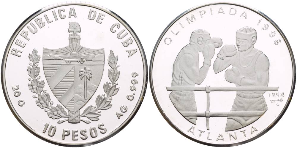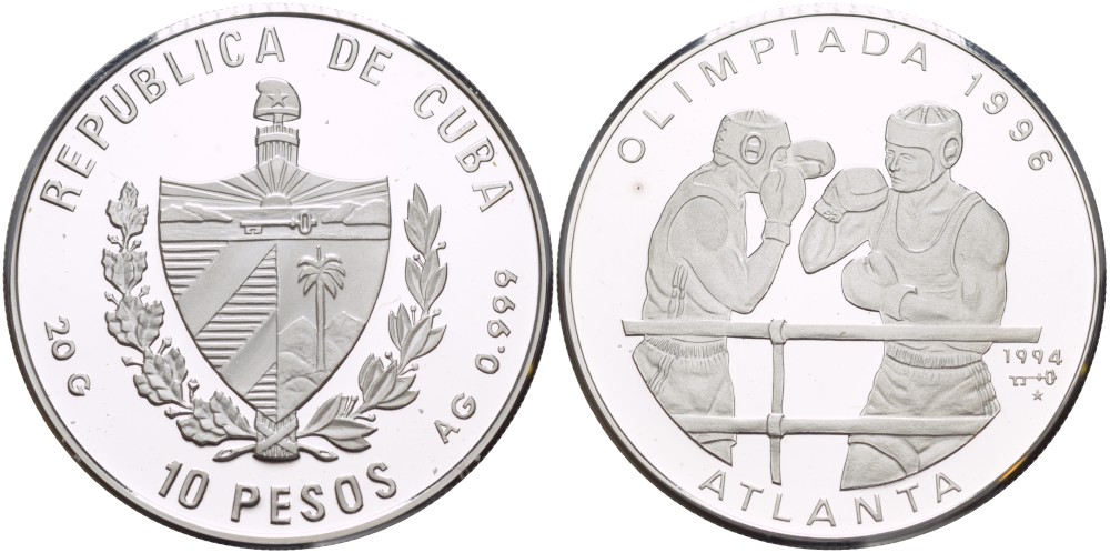 Куба 10 песо 1994 XXVI летние Олимпийские игры 1996 года в Атланте, бокс KM 469 серебро PROOF 00-00