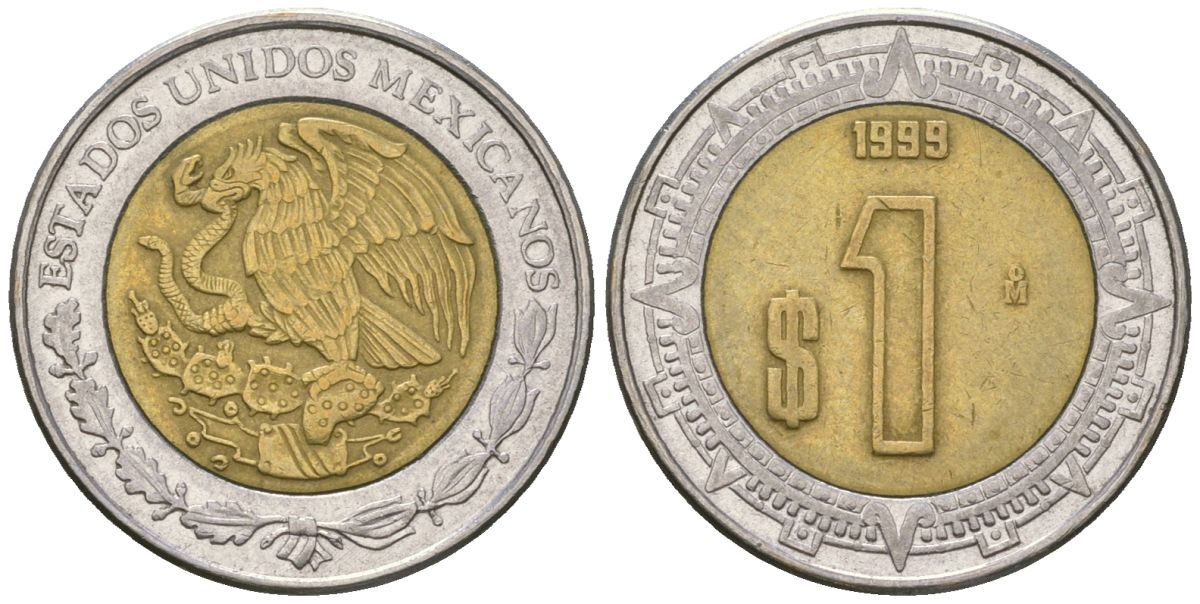 Мексика 1 песо 1999 Mo KM 603 биметалл 4591-143