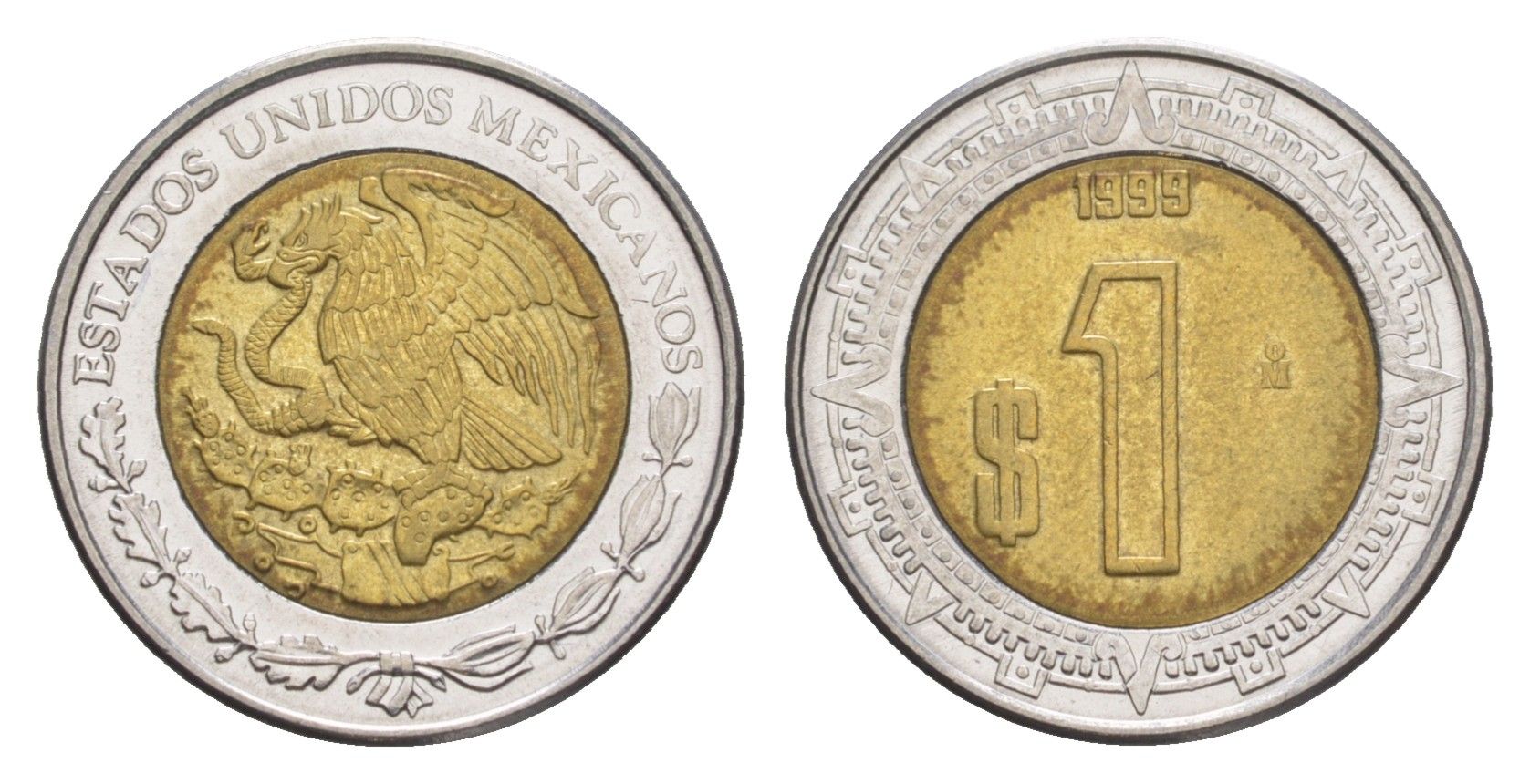 Мексика 1 песо 1999 Mo KM 603 биметалл 4636-524