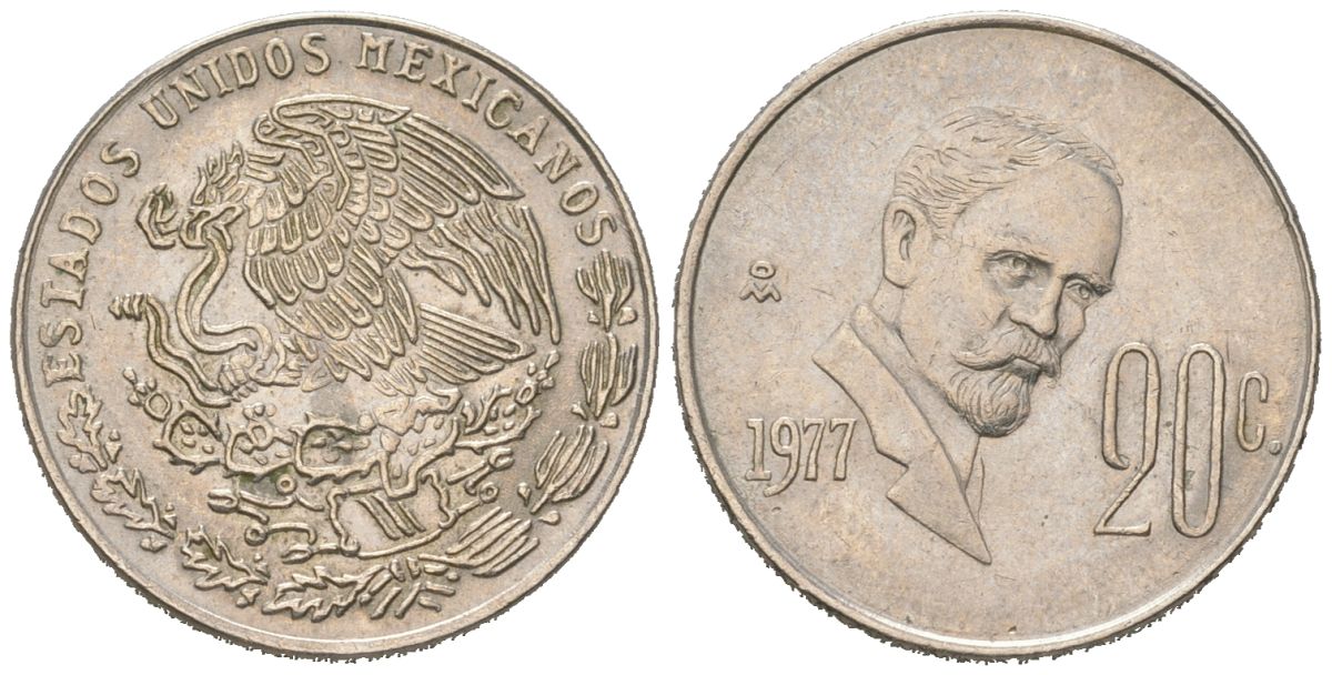 Мексика 20 сентаво 1977 Mo KM 442 медно-никель aUNC 206-411