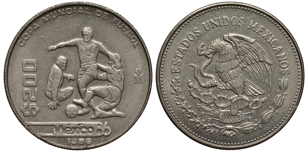 Мексика 200 песо 1986 чемпионат мира по футболу в Мексике в 1986 году, матч KM 525 медно-никель 215-942