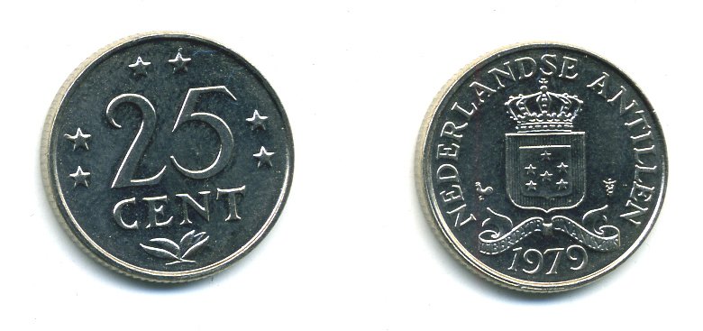 Нидерландские АНТИЛЛЫ 25 ЦЕНТОВ 1979 KM 11 никель 46-1247
