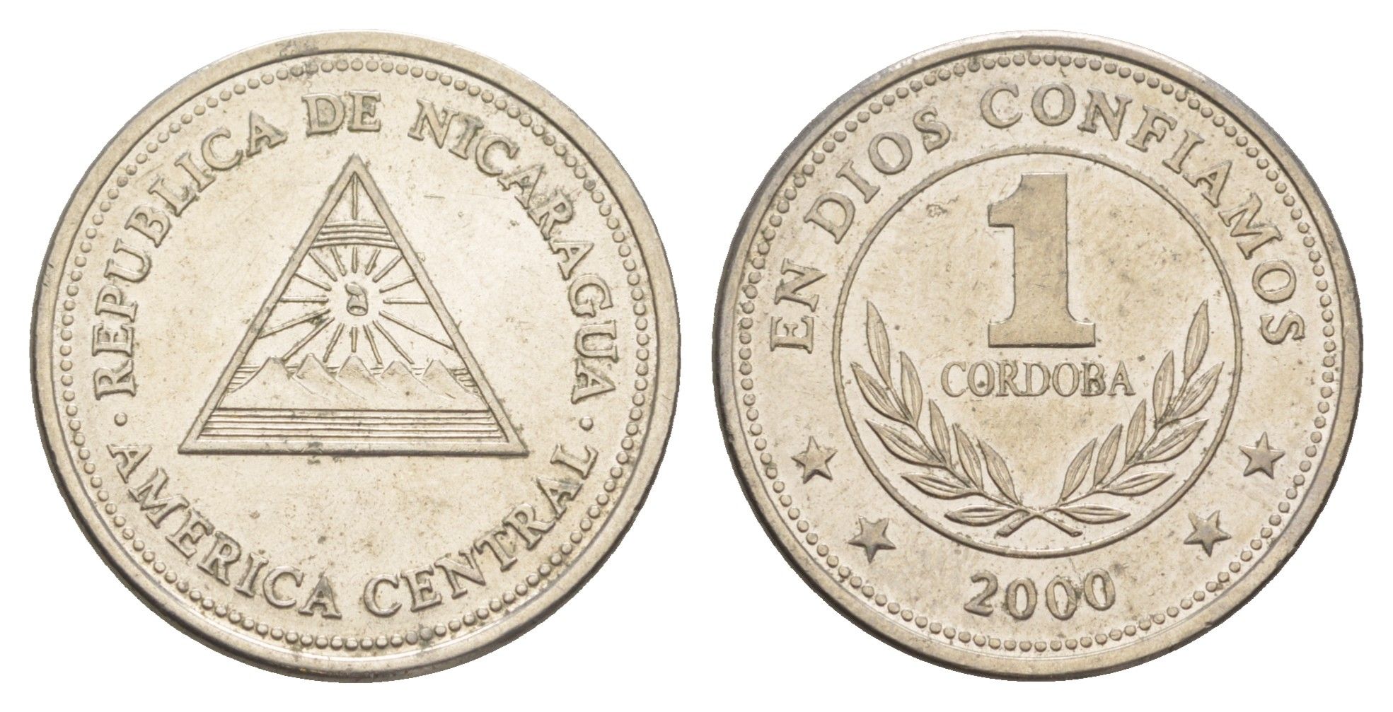 Никарагуа 1 кордоба 2000 KM 89 сталь плакированная никелем aUNC 4641-355