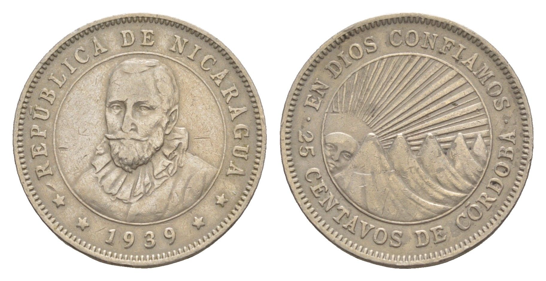 Никарагуа 25 сентаво 1939 KM 18.1 медно-никель 4641-236