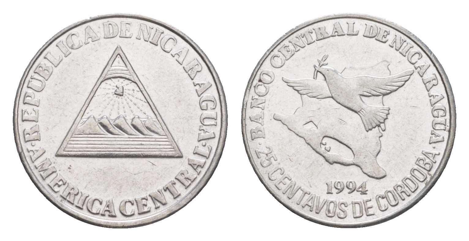 Никарагуа 25 сентаво 1994 KM 82 хромированная сталь 4640-1037