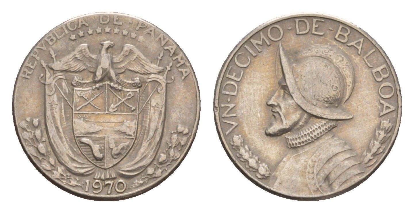 Панама 1/10 бальбоа (10 сентесимо) 1970 KM 10 медь плакированная медно-никелем 4655-854