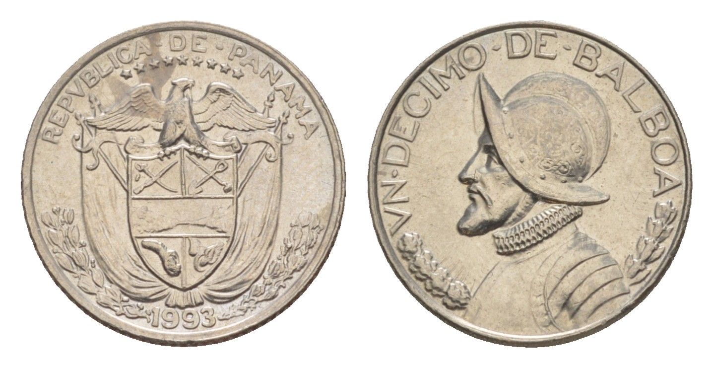 Панама 1/10 бальбоа (10 сентесимо) 1993 KM 10 медь плакированная медно-никелем UNC 4644-166