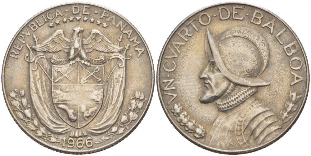 Панама 1/4 бальбоа 1966 KM 11a медь плакированная медно-никелем 261-1033