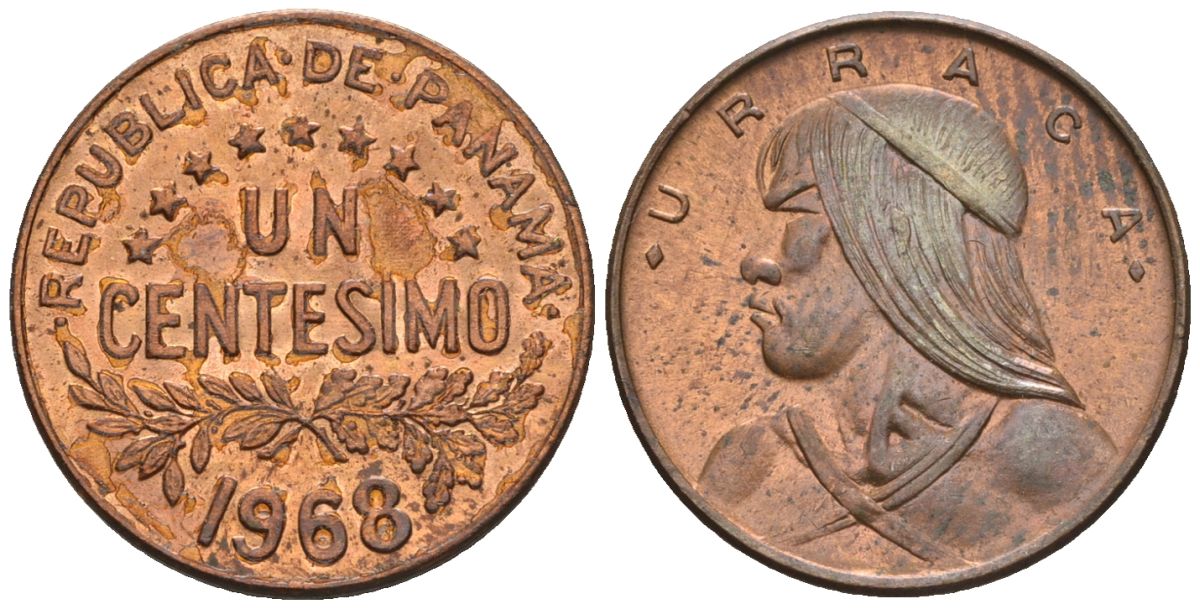 Панама 1 сентесимо 1968 KM 22 бронза aUNC 4609-836