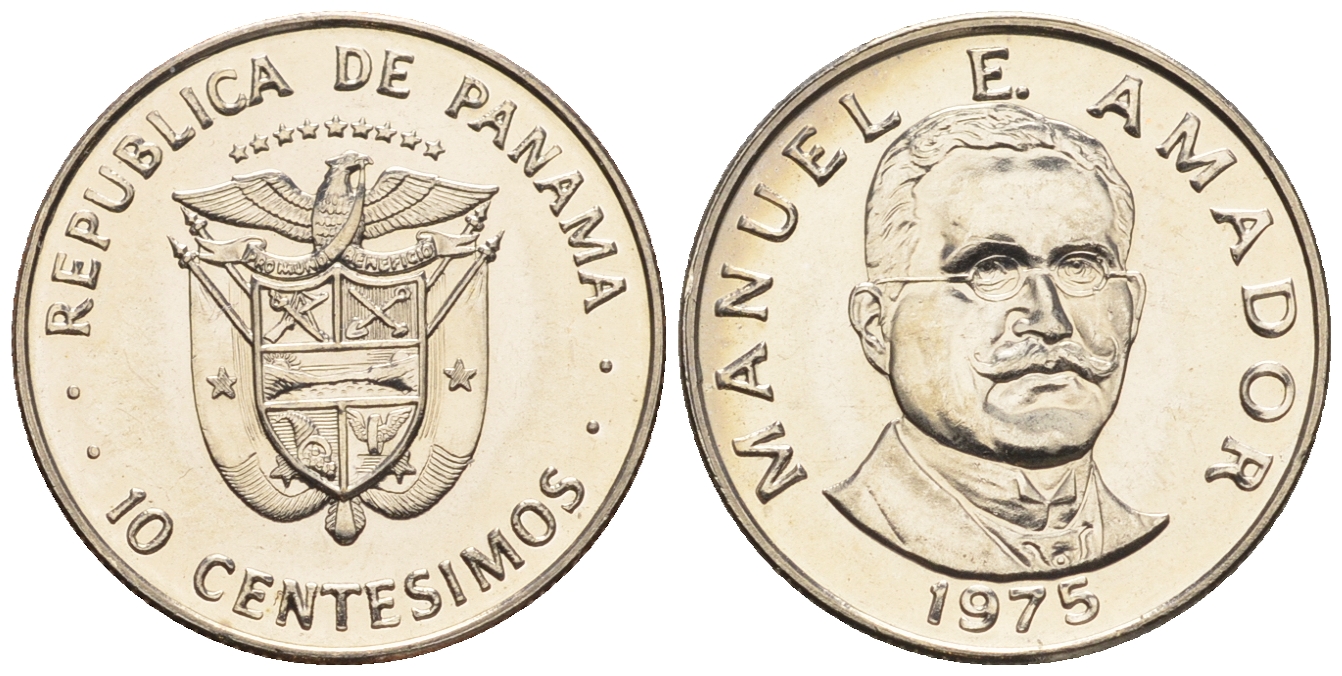 Панама 10 сентесимо 1975 Мануэль Амадор KM 36.1 медь плакированная медно-никелем UNC M15-04