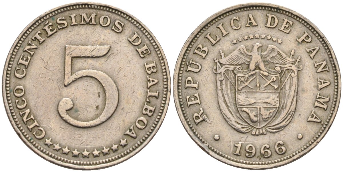 Панама 5 сентесимо 1966 KM 23.2 медно-никель 4143-451