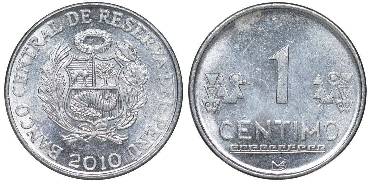 Перу 1 сентимо 2010 LIMA KM 303.4a алюминий aUNC 4189-1038