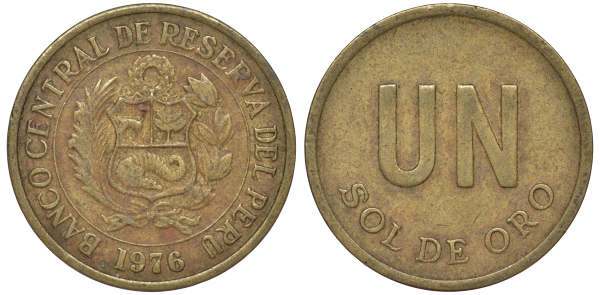 Перу 1 соль 1976 KM 266.1 латунь 4605-525