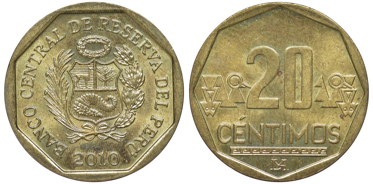 Перу 20 сентимо 2008 KM 306.4 латунь aUNC 4605-515