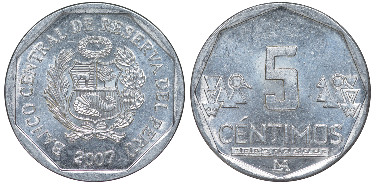 Перу 5 сентимо 2007 LIMA KM 304.4a алюминий aUNC 4189-962