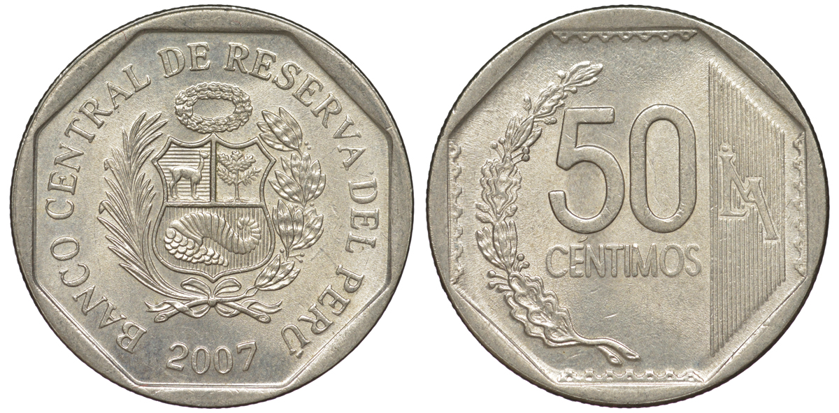 Перу 50 сентимо 2007 KM 307.4 медно-никель aUNC 4605-257