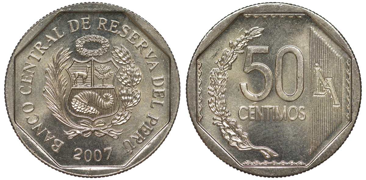Перу 50 сентимо 2007 KM 307.4 медно-никель aUNC 4605-313