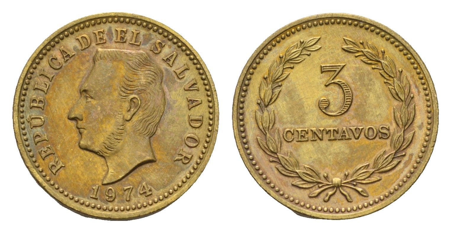 Сальвадор 3 сентаво 1974 KM 148 никель латунь UNC 4643-723