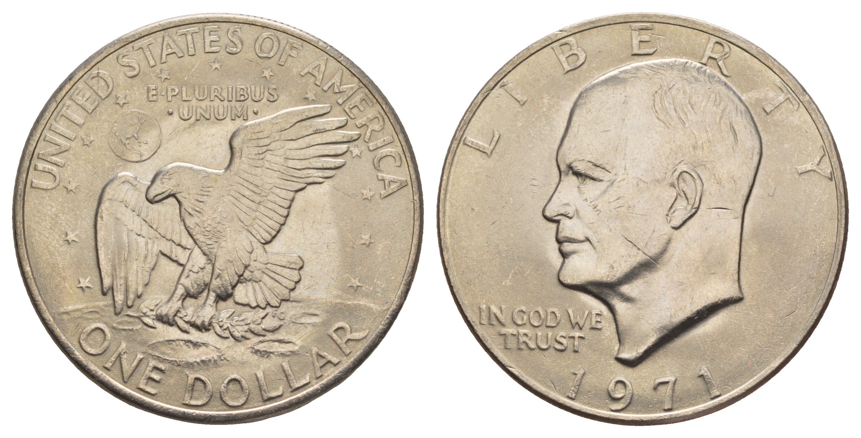 США 1 доллар 1971 Президент Эйзенхауэр, лунный орел KM 203 медь плакированная медно-никлем aUNC 4537-715