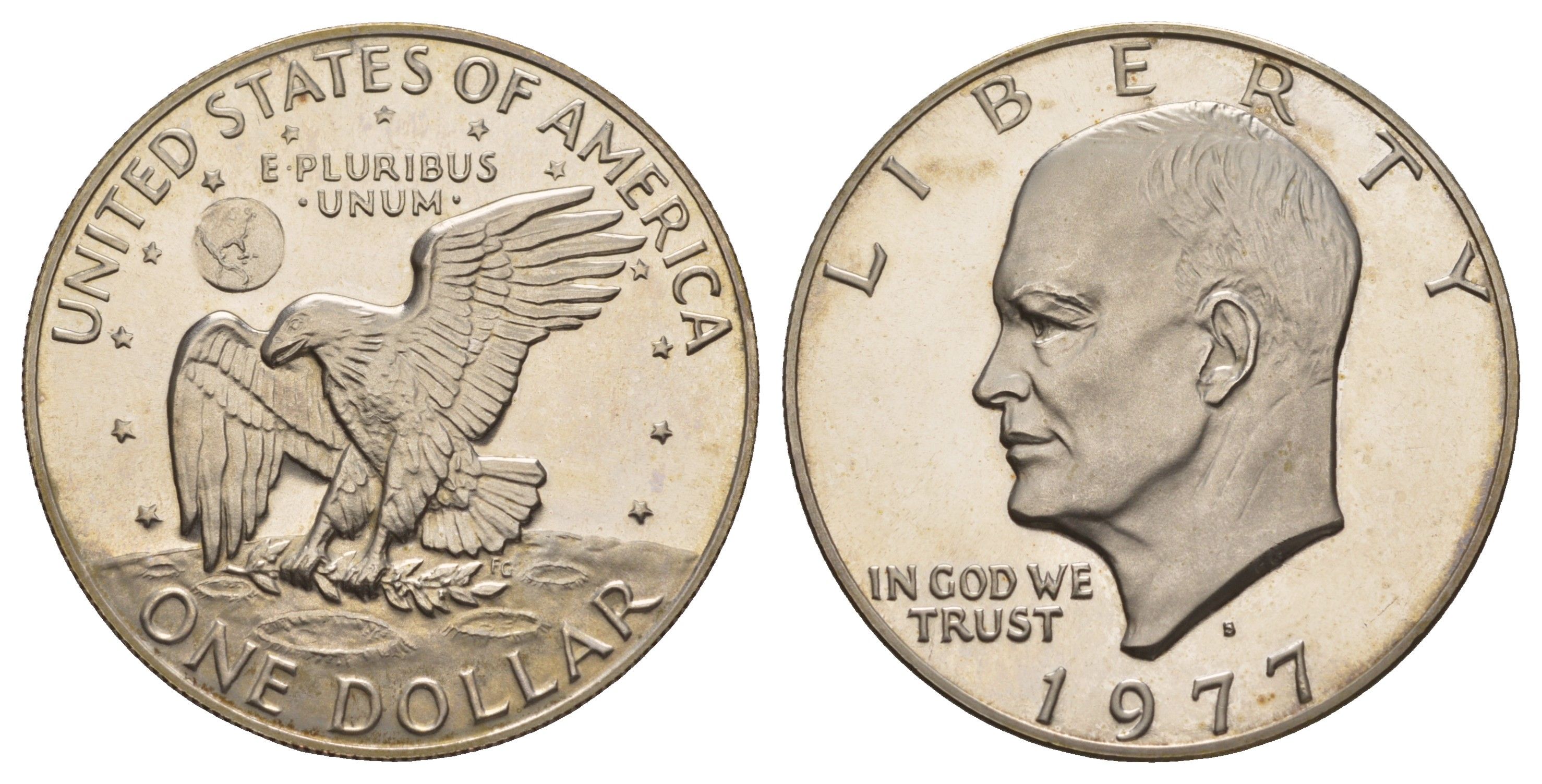 США 1 доллар 1977 S, Президент Эйзенхауэр, лунный орел KM 203 медь плакированная медно-никлем PROOF 413-2141
