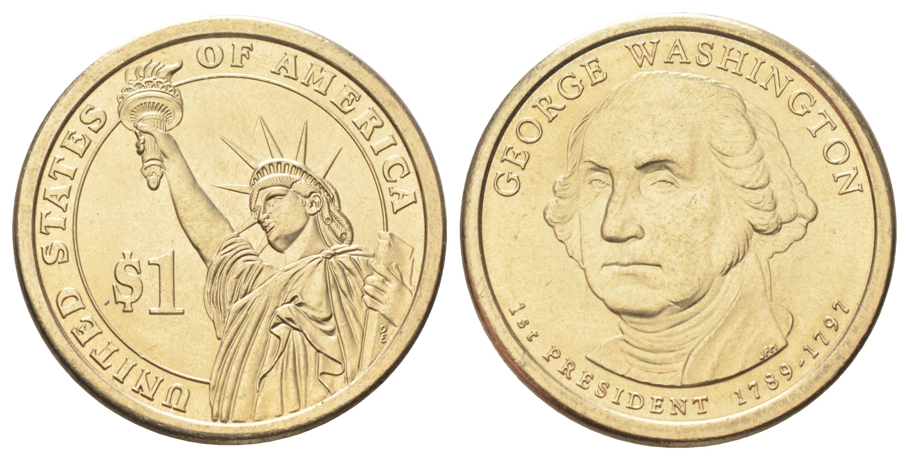 США 1 доллар 2007 Президент США - Джордж Вашингтон (1789-1797) KM 401 медь с марганцево-латунным покрытием UNC 4666-941