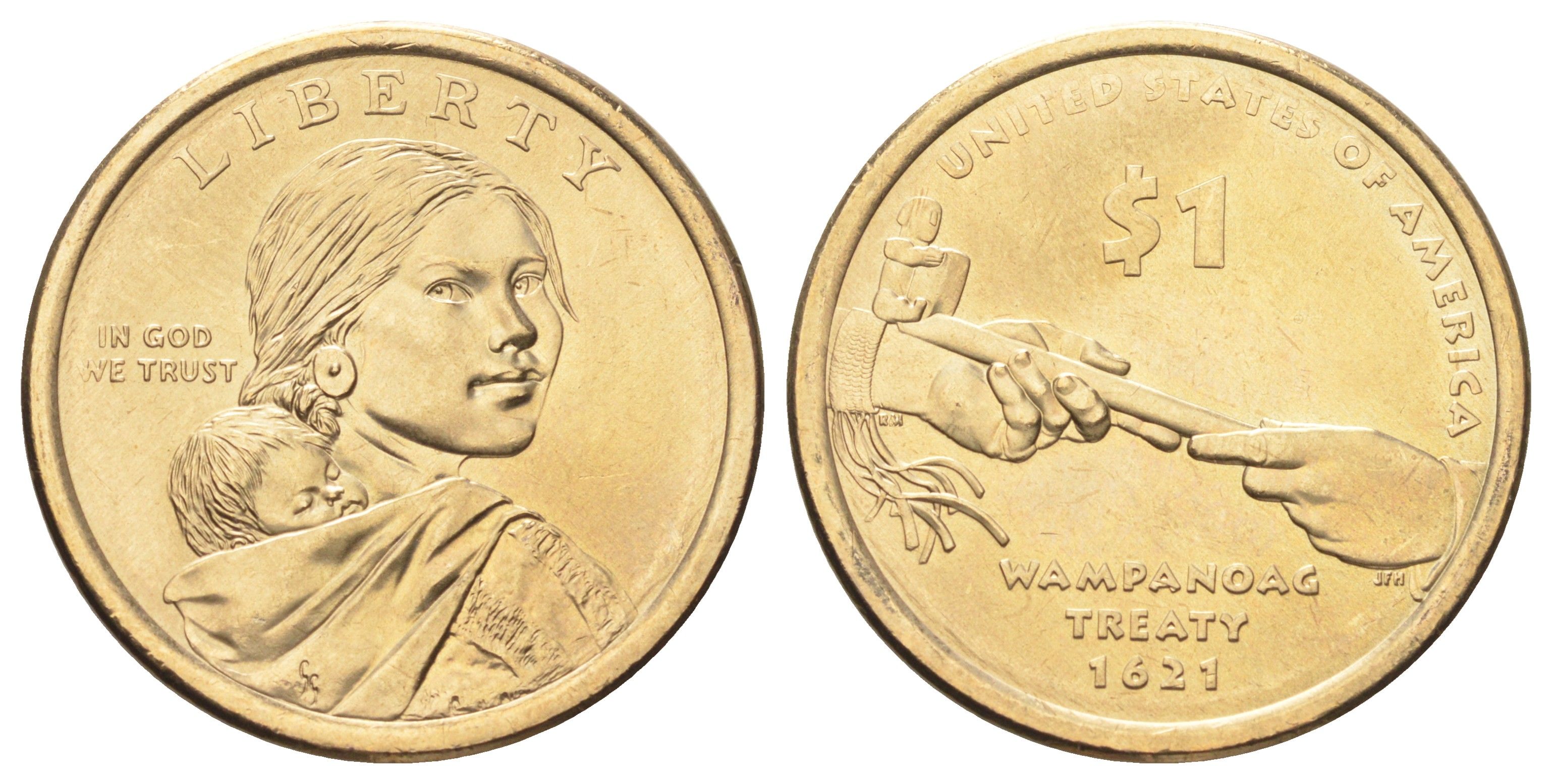 США 1 доллар 2011 Коренные Американцы - Договор с Вампаноагами KM 503 медь с марганцево-латунным покрытием UNC 4666-1015