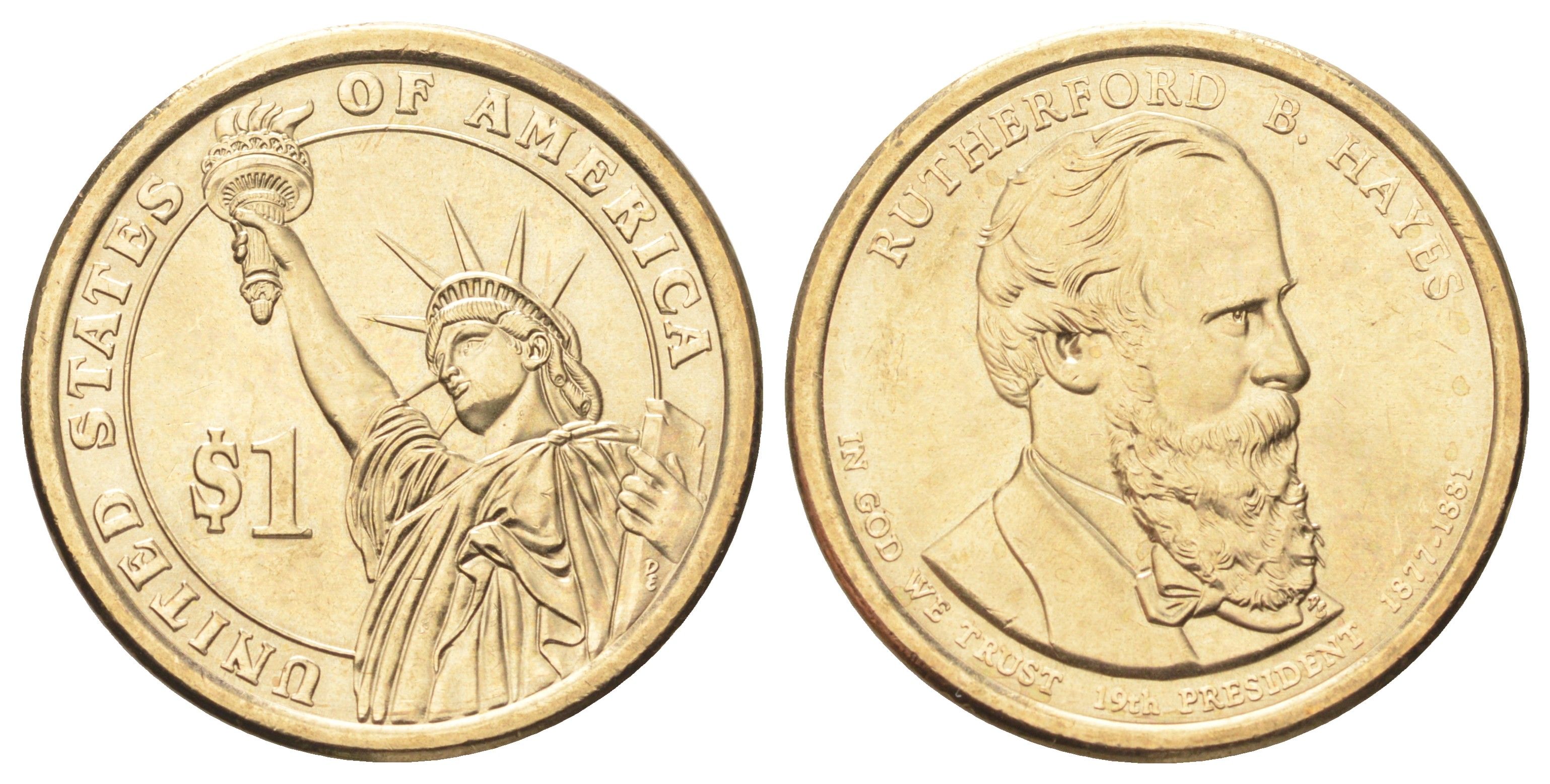 США 1 доллар 2011 Президент США - Ратерфорд Хейз (1877-1881) KM 501 медь с марганцево-латунным покрытием UNC 4666-1014