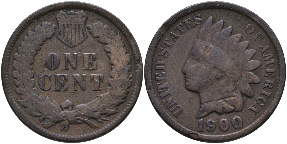 США 1 ЦЕНТ 1900 ИНДЕЕЦ KM 90а бронза 4396-331