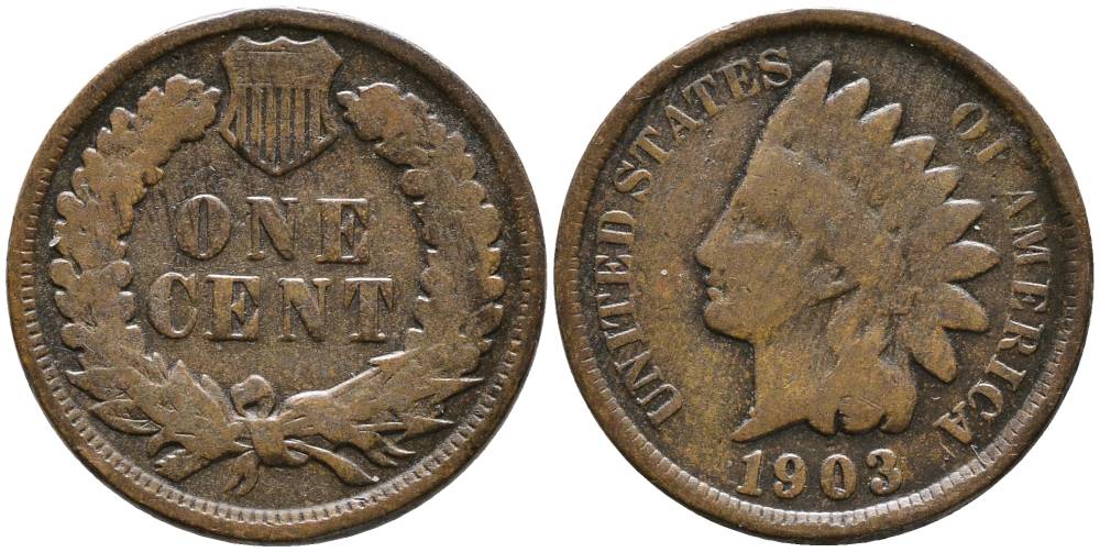 США 1 ЦЕНТ 1903 ИНДЕЕЦ, INDIAN HEAD KM 90а бронза 4543-547