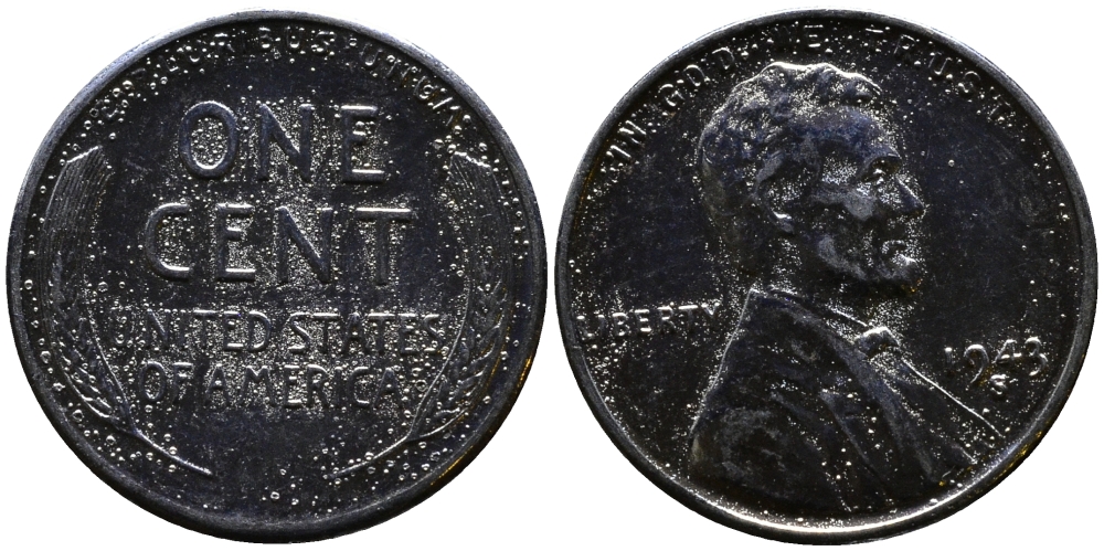 США 1 ЦЕНТ 1943 S KM 132 a сталь плакированная цинком 4392-1152