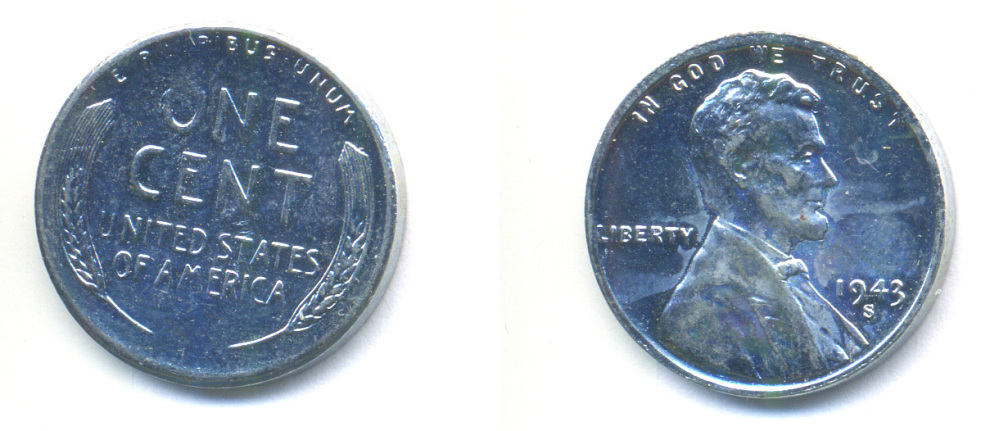 США 1 цент 1943 S (Сан-Франциско), Авраам Линкольн KM 132a сталь плакированная цинком 4392-751