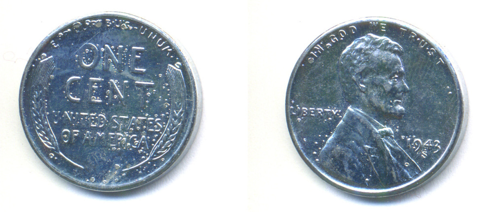 США 1 цент 1943 S (Сан-Франциско), Авраам Линкольн KM 132a сталь плакированная цинком 4392-755