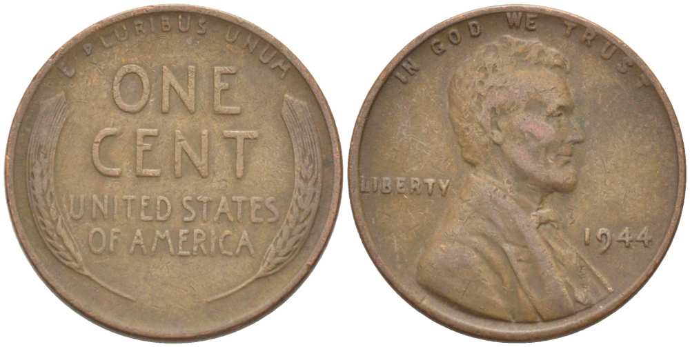 США 1 ЦЕНТ 1944 ЛИНКОЛЬН KM А132 медь цинк 218-454