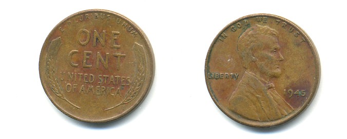 США 1 ЦЕНТ 1945 ЛИНКОЛЬН KM А132 медь цинк 76-161