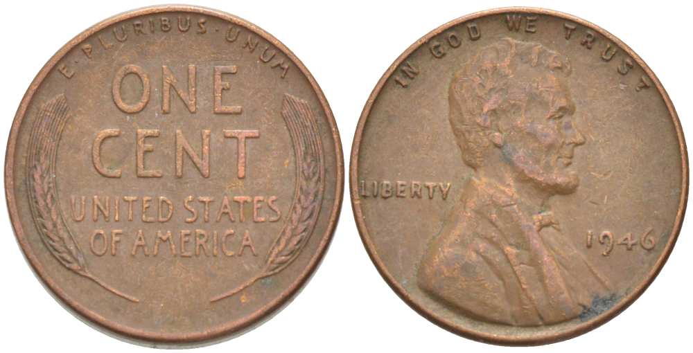 США 1 ЦЕНТ 1946 ЛИНКОЛЬН KM А132 медь цинк 218-939