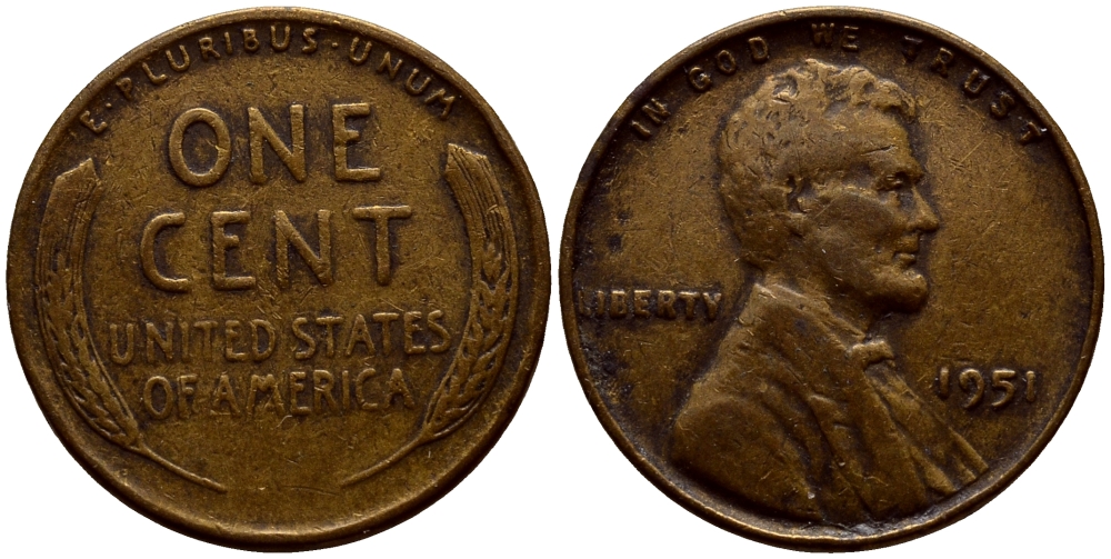 США 1 ЦЕНТ 1951 ЛИНКОЛЬН KM А132 медь цинк 54-1016