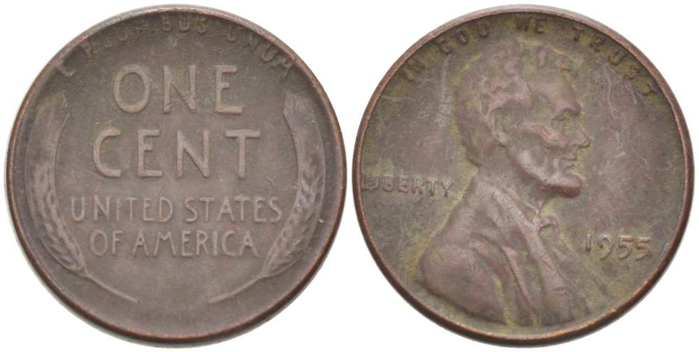 США 1 ЦЕНТ 1955 ЛИНКОЛЬН KM А132 медь цинк 218-1023