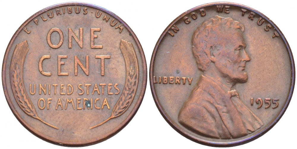 США 1 ЦЕНТ 1955 ЛИНКОЛЬН KM А132 медь цинк 3309-235