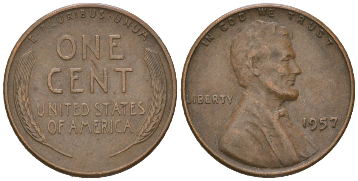 США 1 цент 1957 Авраам Линкнольн KM 132 бронза 220-558