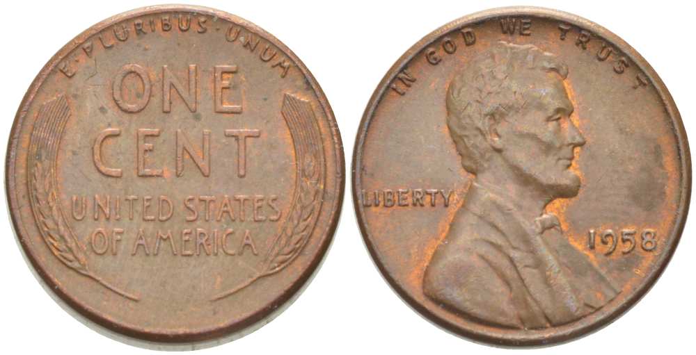 США 1 ЦЕНТ 1958 ЛИНКОЛЬН KM А132 медь цинк 218-1043