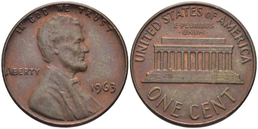 США 1 ЦЕНТ 1963 ЛИНКОЛЬН KM 201 медь цинк 26-1631
